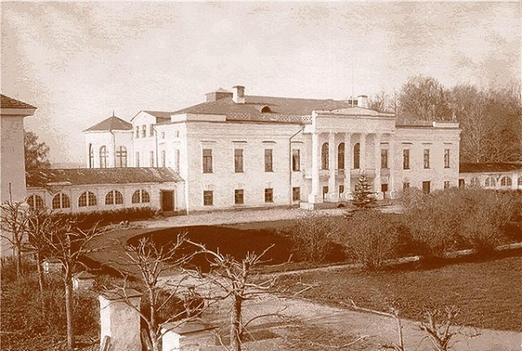 В 1764 г. усадьба Николо-Погорелое была приобретена у Лыкошиных разбогатевшим вяземским купцом И.С. Барышниковым. Новый хозяин развернул в селе масштабное каменное строительство. В конце 1770-х гг. был завершен большой господский дом о двух этажах с высоким полуподвалом и с 365 комнатами. Подковообразный в плане, он стоял на краю возвышенности. Склон ее занимали ряды искусственно спланированных террас, засаженных деревьями. Они спускались до самого Днепра. На одной из террас был сооружен пруд.