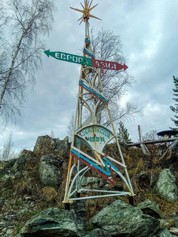 Также на вершине находится четырехметровый знак Европа-Азия (один из пяти в округе), установленный в 2006 году Ломовым В.А. и реставрированный в 2018г новоуральскими краеведами.