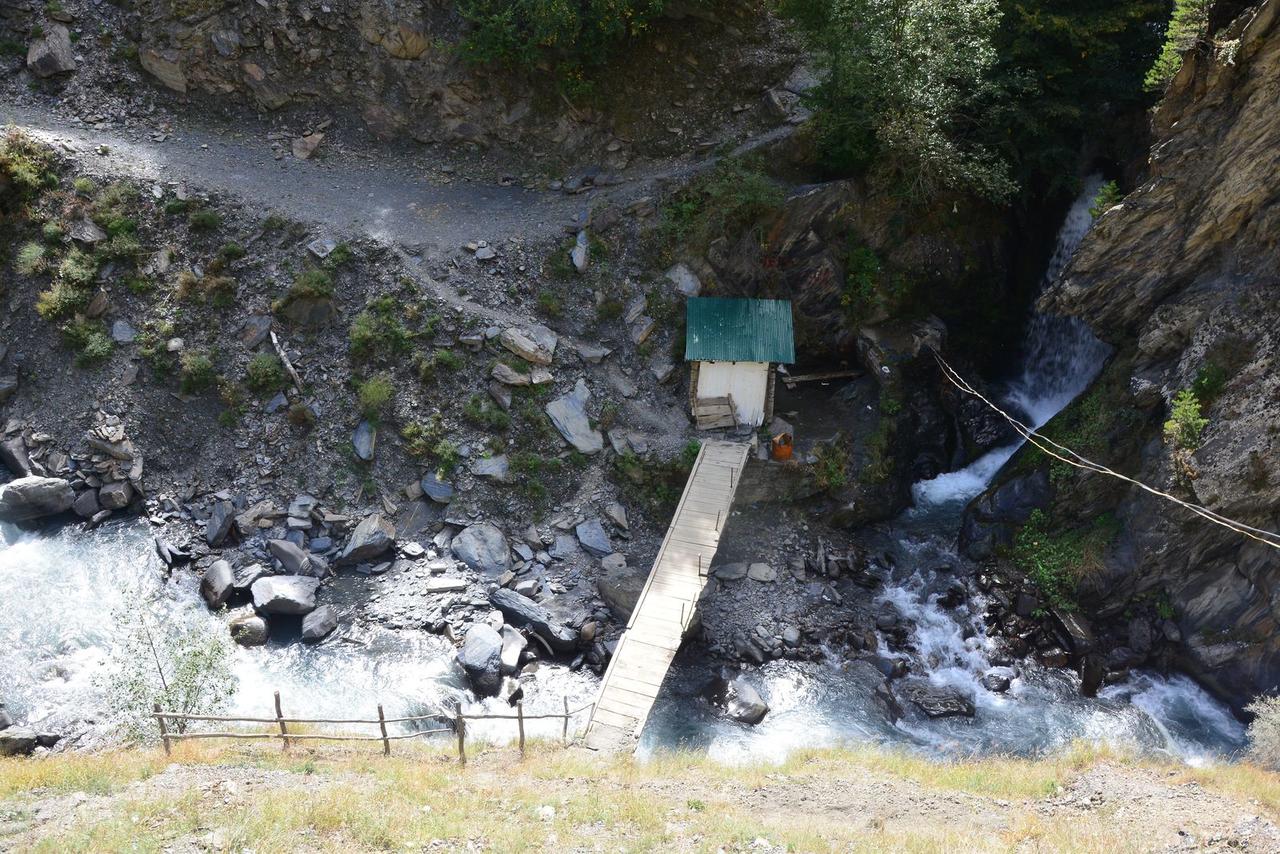 Нарзанный йодосодержащий источник «Регьа» в окрестностях села Инхоквари славится своими целебными свойствами. На его берегу расположено что-то вроде домика для отдыха чабанов, увидев его, не торопитесь спускаться к подвесному мосту, там случился обвал и теперь эта крутая тропа доступна, пожалуй, только козам. Проедьте дальше и перейдите по нормальному мосту. У "домика" можно набрать водички не прямо из водопада, а из кранчика, попить нарзан, сидя на скамейке в тени. Такое вот благоустройство.