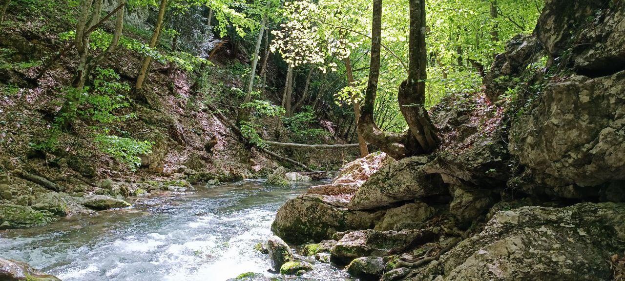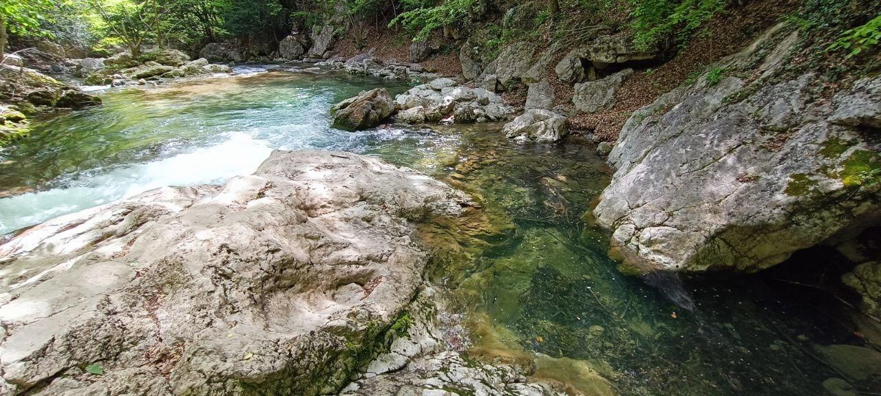 Одна из точек нижнего маршрута по Большому Каньону Крыма - Голубое озеро.