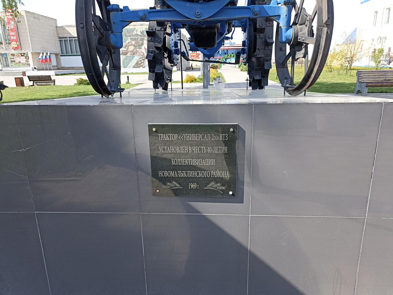 Новомалыклинский «Универсал» ВТЗ — подлинный трактор, проработавший на полях области около десяти лет. Принадлежал он созданной на станции Якушка в 1929 году Якушкинской МТС, которая оказала решающее влияние на ход коллективизации в Новомалыклинском районе. На место установки он прибыл своим ходом и был возведен на бетонный пъедестал размером 2х3 м. и от 2 до 1,5 м по высоте с уклоном площади к задней стороне.