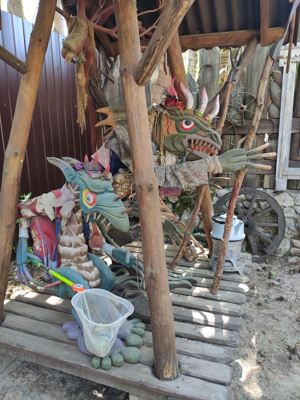 Усадьбу эту в народе прозвали музеем Бабы Яги, хотя сами хозяева сказочной территории так ее никогда не называли. Но народная молва на то и народная: что увидели, о том другим и рассказали. А персонажей, словно сошедших со страниц русских народных сказок, тут пруд пруди.