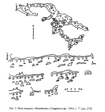 Нукатская пещера расположена в 26м выше по склону берега реки Нукат, подъём крутой, на спуске высока вероятность поскользнуться. Пещера карстового происхождения и разработана в известняках на глубину 150 м при средней высоте 1,5 м. Имеет 2 входа.