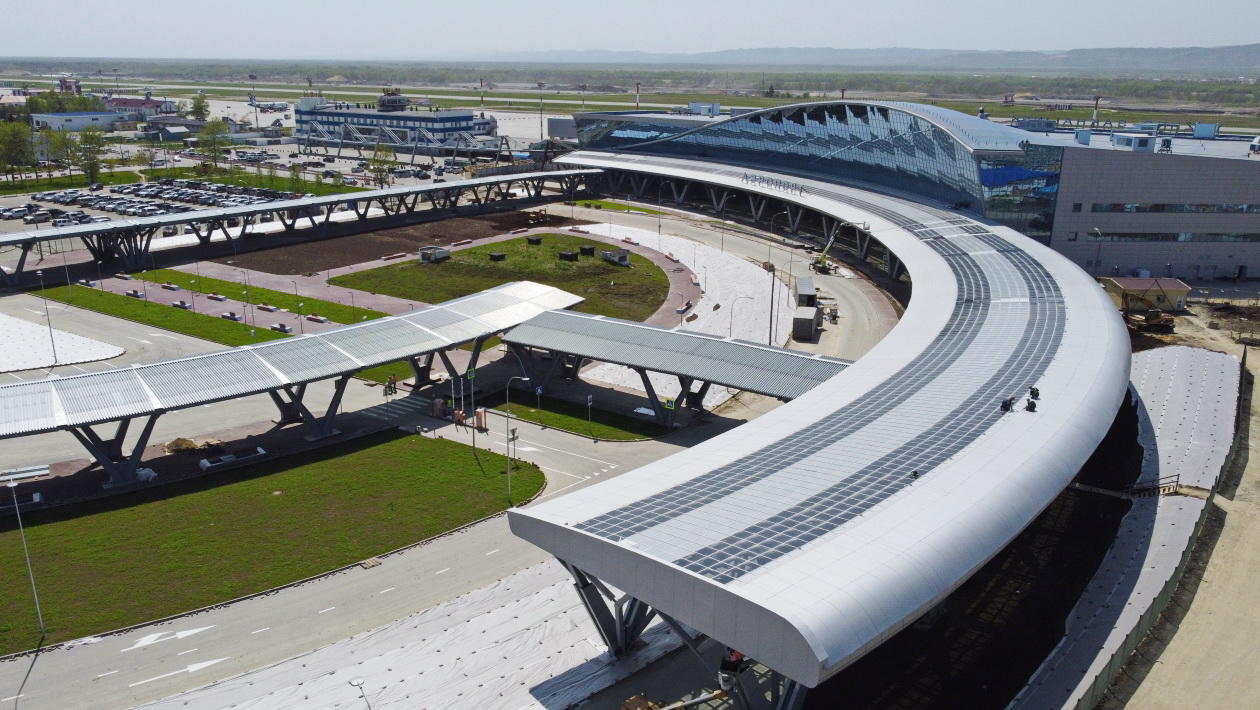 В 2017 году аэропорт «Южно-Сахалинск» получил разрешение на приём/выпуск широкофюзеляжного самолёта Boeing-747 и крупнейшего грузового воздушного судна Ан-124-100 (Руслан). В том же году началось строительство нового аэровокзального комплекса. Ожидалось, что новый комплекс введут в эксплуатацию уже через два года. Но не случилось – работы были остановлены из-за некоторых проблем со стороны подрядчика (включая ошибки в документации), что премьер-министр России Михаил Мишустин во время своего визита на остров в 2021-м назвал «обычной безалаберностью». Тогда же глава Кабмина встретился с представителями ООО «Красинвест», выразившими готовность закончить проект, вложив в него 12,5 млрд. рублей Последние пригласили Мишустина на открытие новой «воздушной гавани», которое, как заверили, состоится в декабре 2022 года. Однако сроки позднее пришлось пересмотреть – в 2022 году возникли трудности с логистикой и необходимостью искать замену импортному оборудованию. Тем не менее, возникшие вопросы удалось решить, успешно продолжив кампанию. Помимо нового терминала, в 2024-м будет достроена взлётно-посадочная полоса протяженностью 3,4 км и шириной 60 метров. Ныне действующая ВПП эксплуатируется больше полувека и давно не отвечает всем требованиям. В дальнейшем её будут использовать в качестве магистральной рулёжной дорожки.