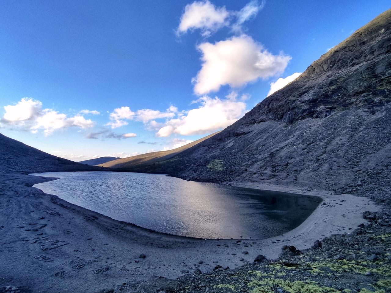 На перевал поднялись вечером, вышедшее после обеда солнце уже садилось и освещало лишь вершины по обеим сторонам перевала. Здесь очень красивое озеро, и на мой взгляд, оно куда живописнее всем известного Изумрудного. Жаль, не удалось искупаться - на перевале гулял сильный ветер, хотелось поскорее начать спуск в долину. Радостно было найти в туре перевальную записку от дружественной группы нашего же ТК ВШЭ: ребята были здесь всего два дня назад!
