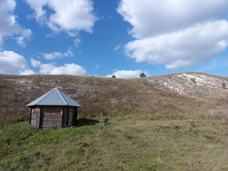 Источник был обнаружен визуально - проезжая мимо, я заинтересовался, а что это там чернеется, на белом меловом холме. На месте оказалась часовня, освященная в честь Казанской иконы Божией Матери, и рядом с ней недавно построенная купальня. Информация об этом источнике в сети интернет практически отсутствует, можно найти лишь то, что часовня и купальня были построены в 2012 году. Добраться сюда можно двумя путями: короткая дорога ведёт через брод (дно каменистое, на недоприводе брод проезжий как минимум в конце лета, проверено лично), а длинная без брода, но в объезд через Неплёвку и далее по полям