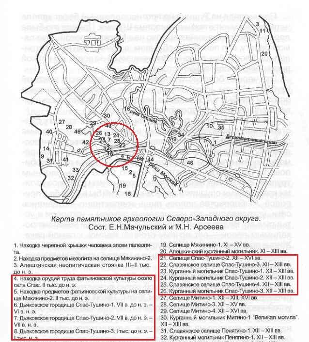 Еще в XIX веке в нижнем течении реки Сходни, возле села Тушино было найдено городище "железного века", которое числилось в документах XVI-XVII вв. как "Пустошь Городище". Название "городище" известно в народе как местность, закрепленная за деревней или пустошью, что подтверждается археологическими раскопками.