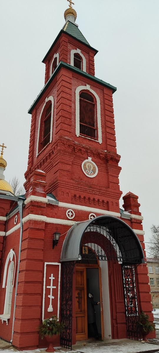 Если свернуть в сторону от шумных улиц, по которым через все районы длинного города снуют-гудят машины всех мастей, окажешься как будто в позапрошлом веке – одноэтажные добротные домики, построенные еще в девятнадцатом веке, безлюдные и безмашинные улицы, краснокирпичные заброшки "со следами былой красоты" на фасадах. И вдруг тишину дополняет и украшает вполне подходящий к этому месту перезвон церковных колоколов. Нарядная и ухоженная, небольшая как игрушка, очень уютная и душевная (или духовная?) стоит неподалеку от железнодорожной станции красивая краснокирпичная с белой отделкой церковь во имя Николая Чудотворца. Стоит она здесь уже более века и является объектом культурного наследия местного значения и памятником русского зодчества начала XX столетия. Была построена в Сарепте сначала деревянная церковь сразу после открытия железнодорожной станции, но по мере разрастания поселка в 1916 году возвели вот этот кирпичный храм. Из-за своего местоположения вдалеке от центра храм оставался действующим вплоть до 1928 года. Но затем и его постигла участь многих российских церквей, но все же не столь печальная, как у тех, что были снесены. Храм закрыли и разместили в нем сначала клуб, а затем магазин. В 1991 году храм был возращен церкви.