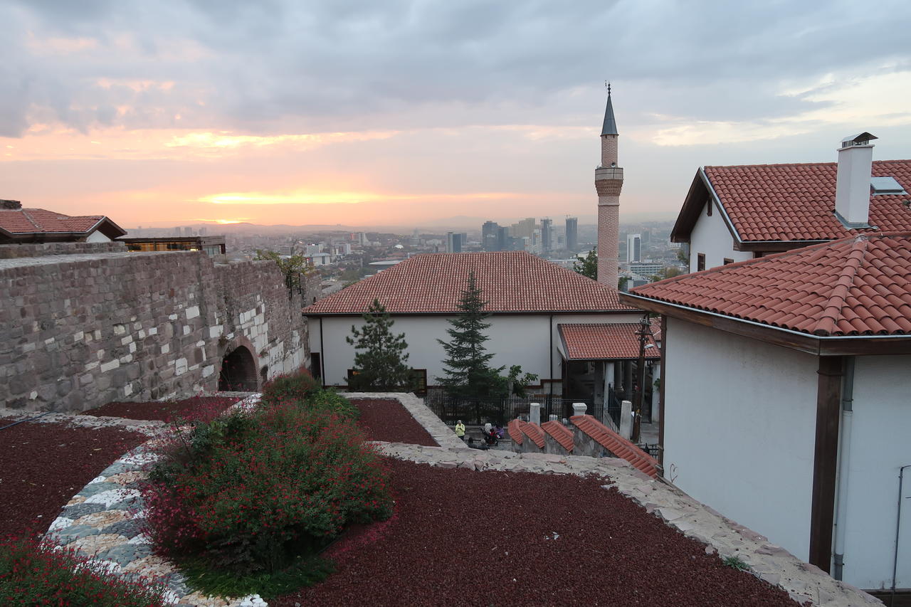 Самая высокая точка крепости – башня Ак Кале (Белый замок). Башня притягивает к себе потрясающей панорамой в 360 градусов на город. Тут всегда полно людей. Для многочисленных туристов башня является вершиной, апогеем прогулки по Старому городу. Для местных жителей это отличное место для «тусовки». Посидеть с кока-колой и пощелкать семечки, созерцая восхитительные закаты – кто от такого откажется? :)). Здесь часты фото сессии свадеб и дней рождений. Будете в Анкаре – зайдите, не пожалеете.