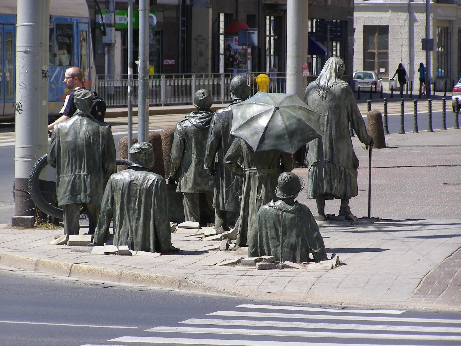 Еще одно название памятника - Памятник анонимному прохожему. Изначально он был установлен в Варшаве, но сразу после введения военного положения был демонтирован. Позже, уже в другом виде, был воспроизведен во Вроцлаве, где художник придал каждой скульптуре индивидуальность, взятую со своих знакомых и родственников. Это удивительное и символичное произведение искусства, которое не оставит равнодушными ни одного туриста. Он представляет собой четырнадцать бронзовых фигур, стоящих по обе стороны Свидницкой улицы. Каждая фигура изображает обычного горожанина - от старушки с тростью до молодого спортивного человека.