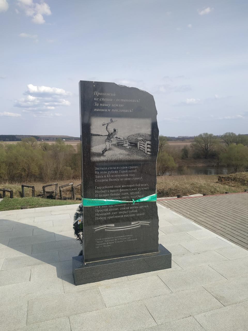 На мемориале в память о Великой отечественной войне реконструированы окопы, блиндажи. Установлен памятник герою войны Алексею Ломакину, который своим телом закрыл вражескую амбразуру с пулемётом, позволив своим товарищам выполнить боевую задачу и освободить населенный пункт на берегу Оки, превращенный фашистами в укреплённую точку. Более подробно об Алексее Ломакине и его подвиге можно почитать тут: https://warheroes.ru/hero/hero.asp?Hero_id=4286