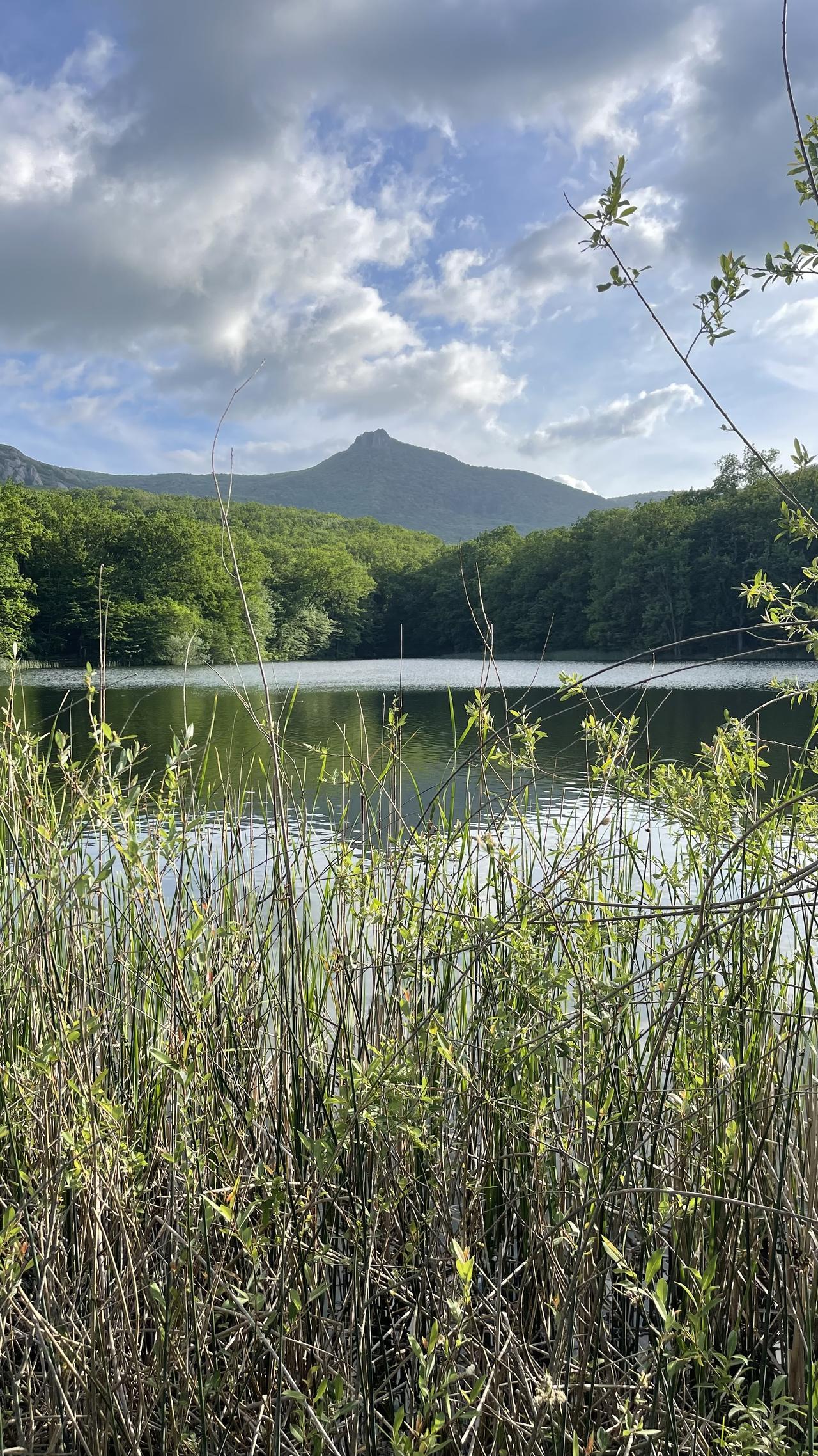 Озеро спряталось в густых зарослях у подножия Ялтах-Кая.