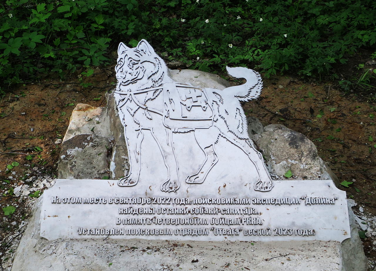 К сожалению, установить породу хвостатого героя невозможно, череп найти не удалось. Но, судя по останкам, собака была не очень большая, поэтому поисковики решили использовать на табличке образ лайки. Мемориальная табличка четвероногому участнику Великой Отечественной войны была установлена в 2023 году.