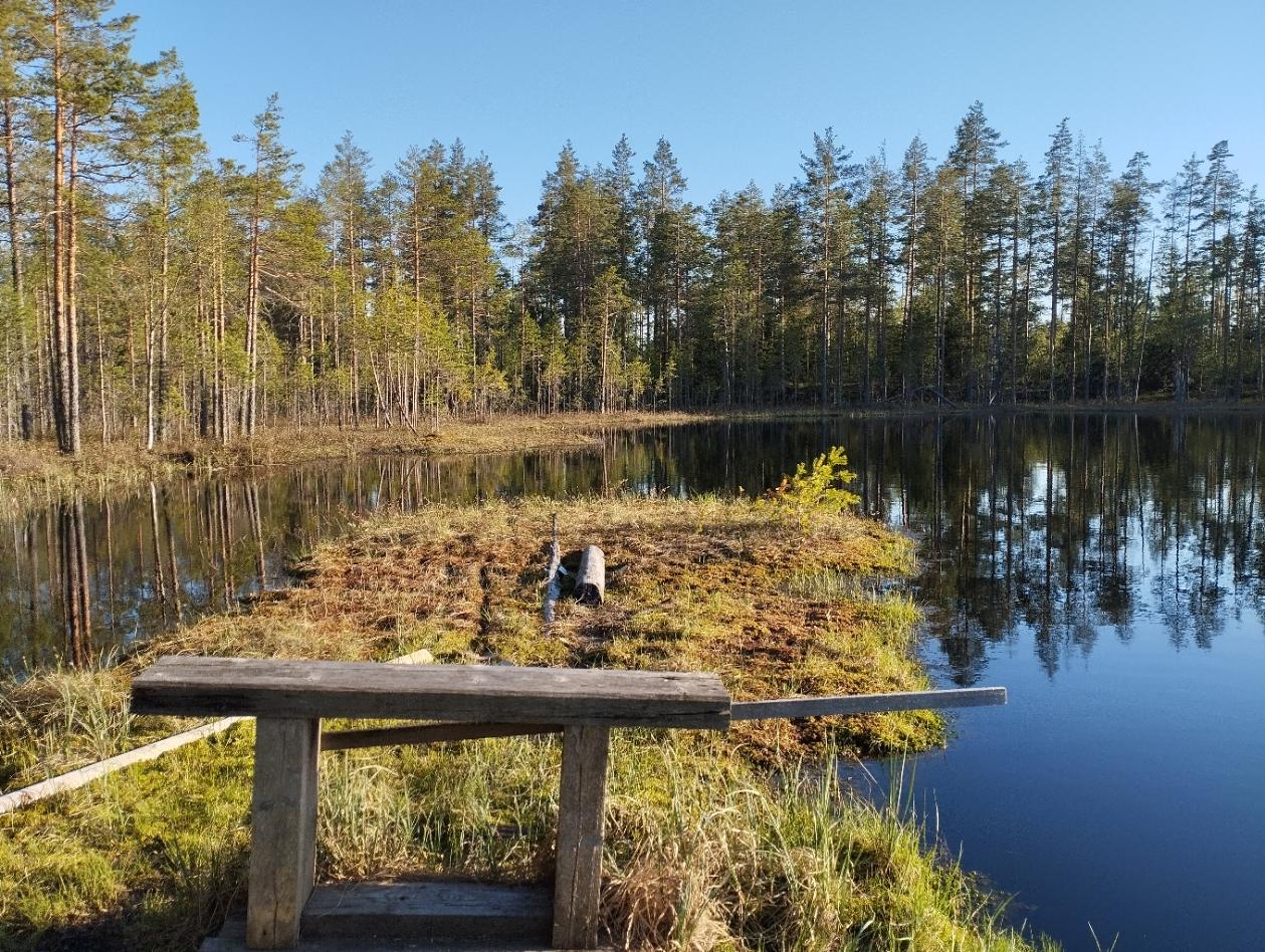 Катаясь по Приозерскому району Ленинградской области, в отдалении от населенных пунктов, на навигаторе наше внимание привлекло вдруг появившееся название "Озеро Адское". Подробные карты Яндекс.Навигатора показали, что к озеру есть дорога и мы не преминули возможностью подъехать и осмотреть местечко для того что бы как минимум перекусить. Само озеро не большое, порядка 70-80 метров в диаметре, происхождение явно торфяное. Подход к озеру фактически только один, где обустроен небольшой пирс с лавочкой, в остальных местах места заболоченные. На удивление место не заброшенное, рядом вполне удобный подъезд для авто, оборудовано и аккуратно подготовлены импровизированный стол, места для костра, столик. В общем, для пикника очень шикарное, хорошо оборудованное место. В округе много сухих деревьев и коры, так что с растопкой в целом тоже проблем не ожидается.