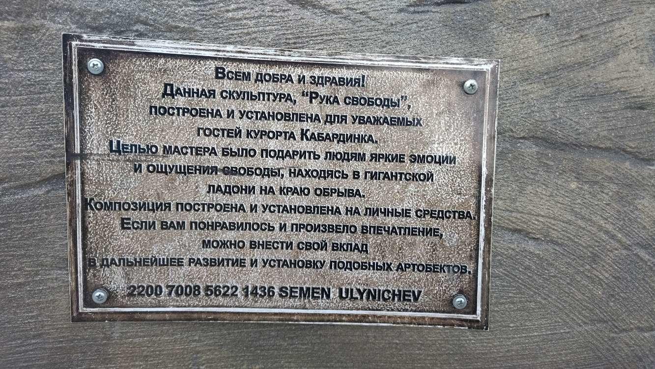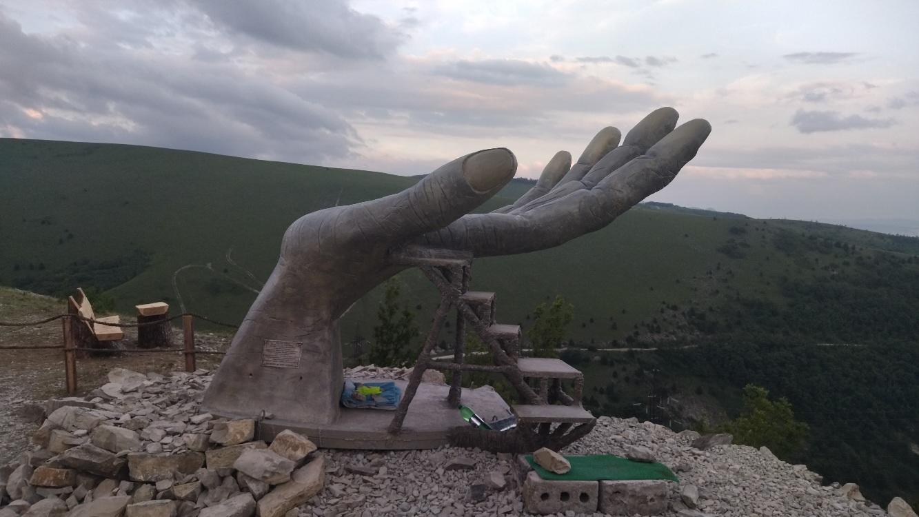 Местный житель с. Кабардинка Краснодарского края Семён, решил создать АРТ объект в виде руки, вдохновленный аналогами европейских стран, где подобные Арт объекты уже давно являются популярными туристическими достопримечательностями.