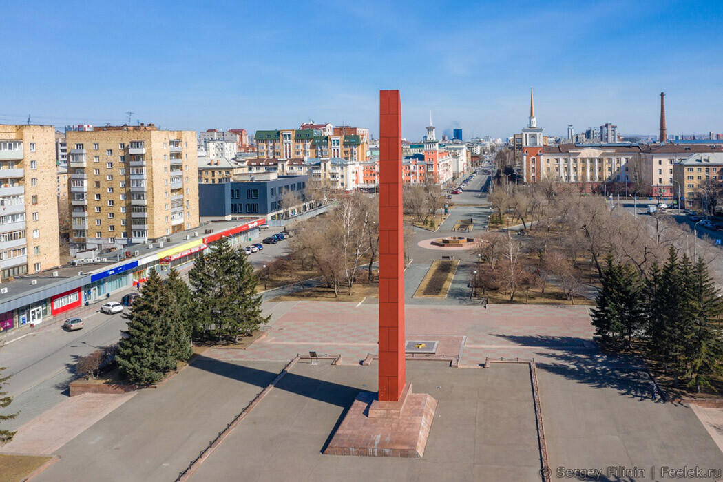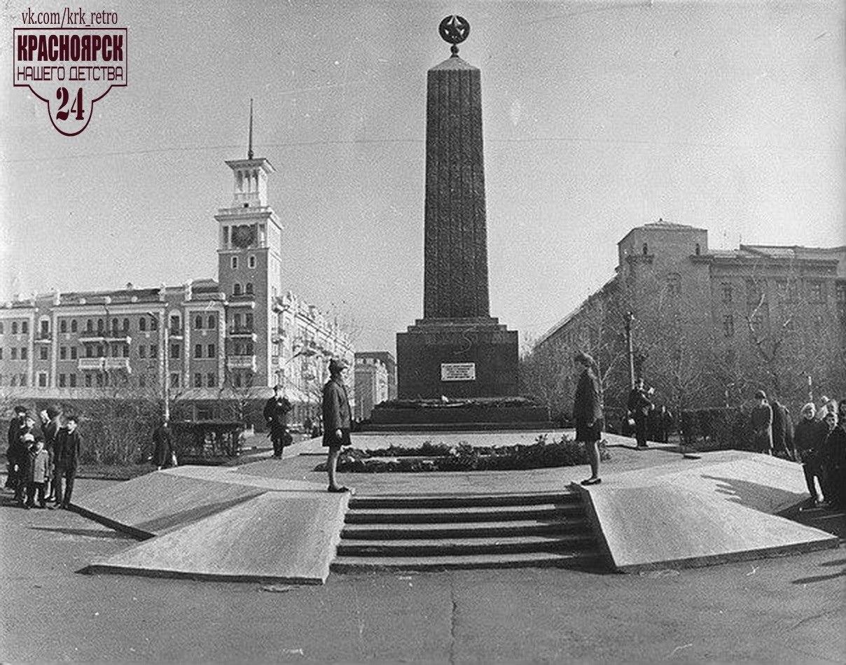 В 1967 году на площади появился обелиск. Место для обелиска было выбрано не случайно. Именно в этом месте, 7 января 1920 г. были погребены 75 человек, погибших при столкновениях с армией Колчака в Красноярске. Сама площадь с тех пор называется Красной.