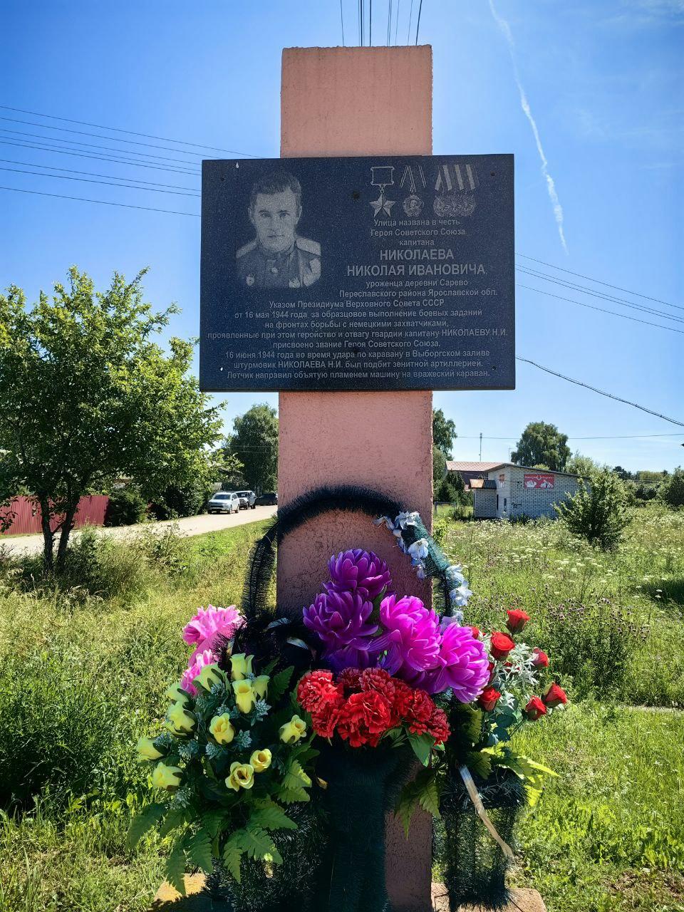 От окраины посёлка переместимся в центр. Здесь, на немноголюдной улице, названной в честь героя, стоит уже современный памятник, посвящённый подвигу Героя Советского Союза гвардии капитана Николая Ивановича Николаева. В ходе Выборгской наступательной операции 18 июня 1944 года при разгроме финского конвоя в Выборгском заливе гвардии капитан Николаев погиб — направил свой горящий подбитый зенитным огнём самолёт на вражеский транспорт, ценой своей жизни уничтожив его. На памятной табличке вы найдёте дату (точнее — две идентичных, используйте любую), сложите последовательно все 6 цифр даты и получите число В.