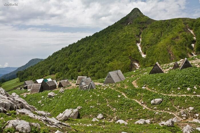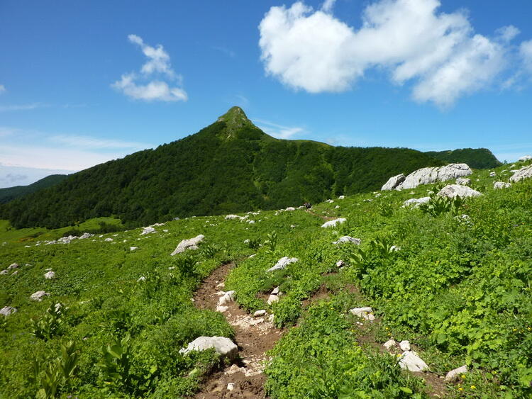 Маврикошка – гора высотой 1954 м с таким смешным названием находится юго-западнее Черкесского перевала, через который проходит знаменитый 30-ый маршрут «Через горы – к морю». Каждый, кто путешествовал по «тридцатке», обращал внимание на эту остроконечную вершину, появляющуюся в поле зрения путника сразу же после прохождения Белореченского перевала. Эта зеленая вершина буквально нависает над пастушьими балаганами. Однако мало кто из путников поднимался на нее, несмотря на ее близость. Кого-то пугает неприступный вид Маврикошки. Кто-то не хочет тратить драгоценное время на маршруте. Кого-то останавливает усталость после утомительного дневного перехода. Однако если вы не сильно связаны жестким графиком и устроили себе на балаганах «день отдыха», не поленитесь и прогуляйтесь на Маврикошку. Виды, открывающиеся с ее вершины, с лихвой окупят ваши усилия, благо что особенно много времени и сил вам затратить не придется)