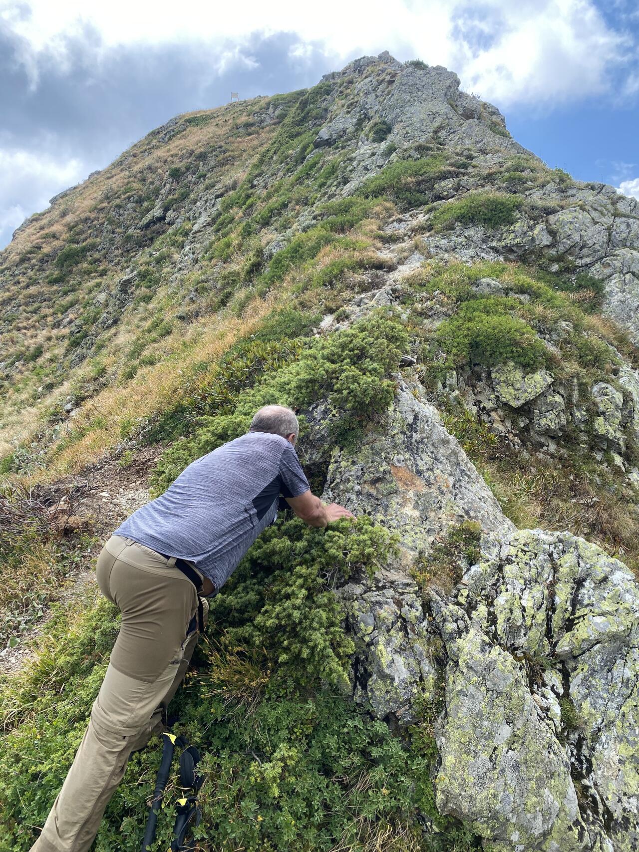 Глядя на вершину Маврикошки со стороны балаганов, задаешься вопросом, а как же взобраться на эту остроконечную гору? Казалось бы, это довольно не просто и тропа на вершину не очевидна. Однако стоит вам пройти по туристической тропе до Черкесского перевала, как эта задача становится все более простой и понятной. Прямо от перевальной седловины начинается натоптанная тропка, которая слегка извиваясь на крутом склоне выведет вас к вершине Маврикошки. Подъем, в целом, не труден и доступен даже неподготовленному человеку. «Напугать» может только крутой скальный участок почти перед вершиной, который надо штурмовать не в «лоб», а обойти чуть левее, используя скальные «ступеньки» и, возможно, немного подстраховываясь руками. Для самых пугливых автор сделал поблажку и заложил тайник возле тропы ниже этого крутого участка. Так что каждый сам для себя решит – надо ли ему подняться на самую вершину горы, или достаточно будет добраться только до коробочки тайника.