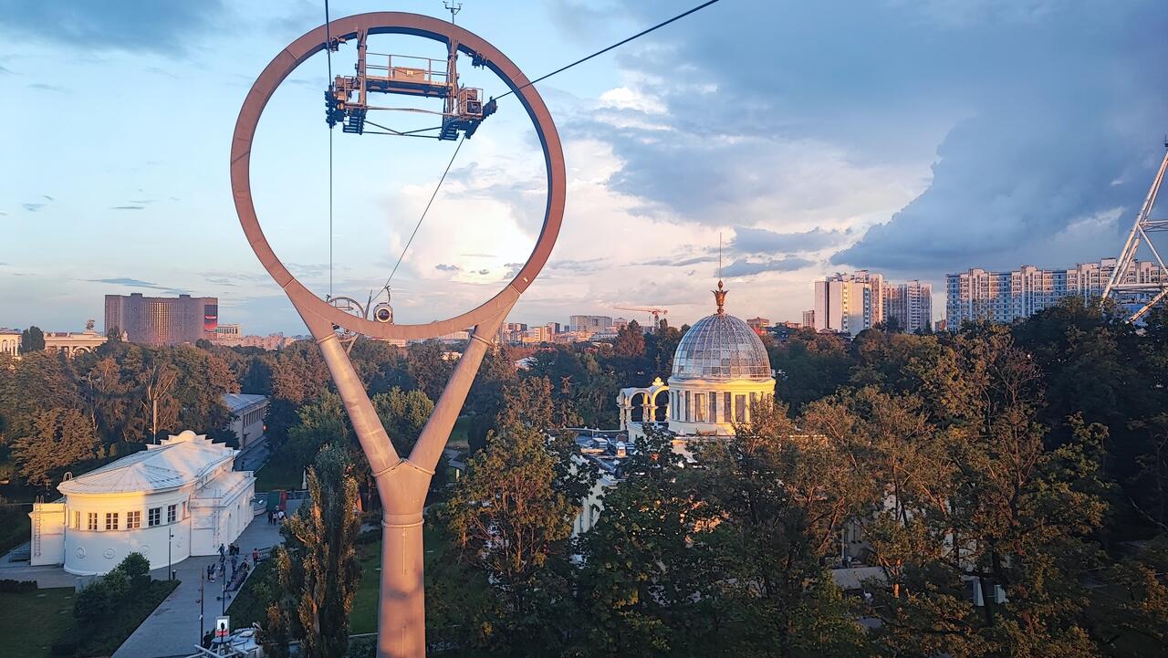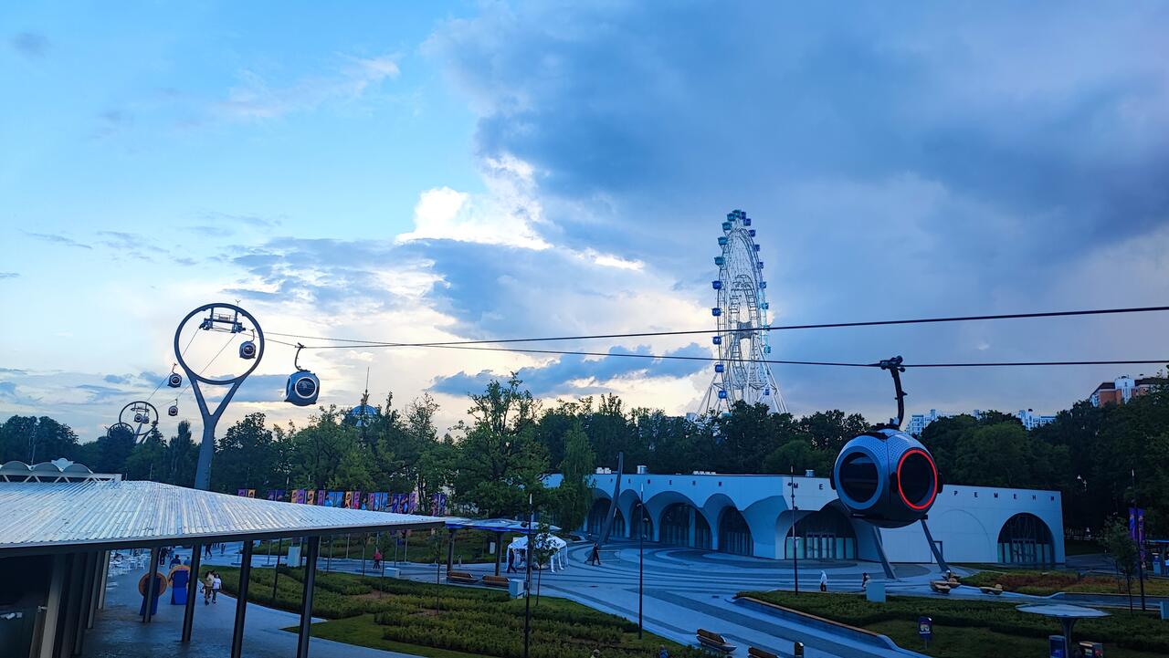 К 85-летию ВДНХ на территории выставки появилась необычная транспортная артерия — канатная дорога. Она стала новым всесезонным аттракционом парка развлечений «Орион» и получила название «Воздушный трамвай».
