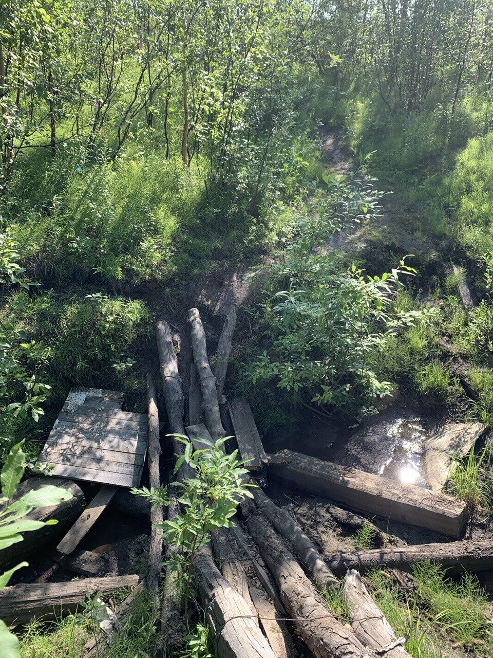 У нас есть интересный и труднодоступный тайник про Лыжный Оль-Гуль, однако я бы хотел подсветить и летнюю привлекательность этого места. Дело в том, что рядом с Лыжной Базой 69.376665, 88.343183 (где зимой можно арендовать лыжи, кстати) была проложена интересная Экологическая тропа - сеть дорожек из деревянных настилов, проложеная по лесотундре, вдоль которых ещё дополнительно установлены разные арт-объекты из местного материала. Простая и приятная прогулка по вашему желанию может растянуться надолго - судя по карте, маршрут может быть до 5 километров! Вы не обязаны проходить его весь, там есть короткий и средний маршруты, выбирайте себе любой. Только заранее ознакомьтесь со спутниковой картой - на месте табличек пока что нет.