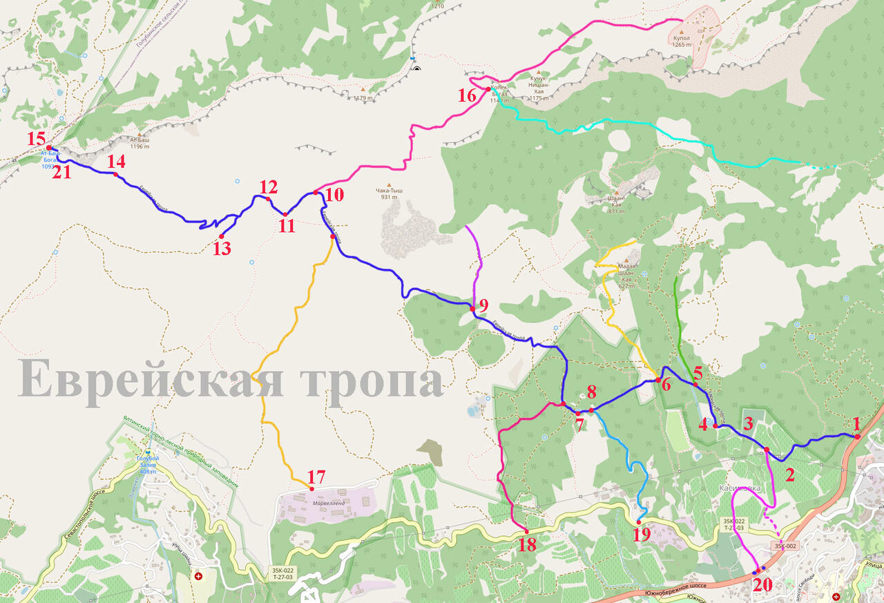 Еврейка, Еврейская тропа, так называют лесную грунтовую дорогу, которая идет со стороны Алупки к горе Ат-Баш. Еврейская тропа относится к самым популярным туристическим маршрутам Крыма.