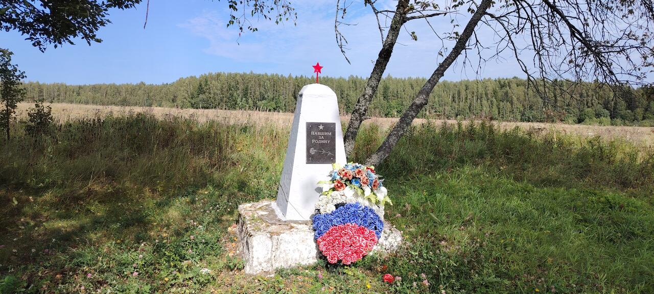 Одинокий обелиск с яркой красной звездой на вершине. На табличке написано "Павшим за Родину". Большой деревянный крест и выцветший венок. Это всё, что осталось от места последнего пристанища многих людей в бывшей деревне Круговые. В перечне населённых пунктов Гжатского уезда ранее называлась Петрушино. В годы Великой Отечественной войны здесь располагался военный госпиталь. Умерших солдат хоронили в братской могиле. Примерно в 2007 году стараниями команды Романа Базалевского на могиле были установлены памятник и деревянный крест.