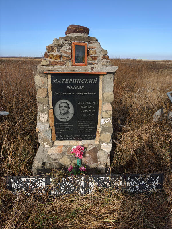 Два брата 4 года назад расчистили место родника на территории хутора, облагородили его, а в прошлом году установили на его территории монумент, который поныне встречает всех приехавших высеченной на камне надписью «Дань уважения матерям России». История, которую поведали Евстифеевы Александр Алексеевич и Юрий Алексеевич тронет за душу любого. Это история женщин, в судьбах которых, как в капле воды, отражена судьба всей страны.