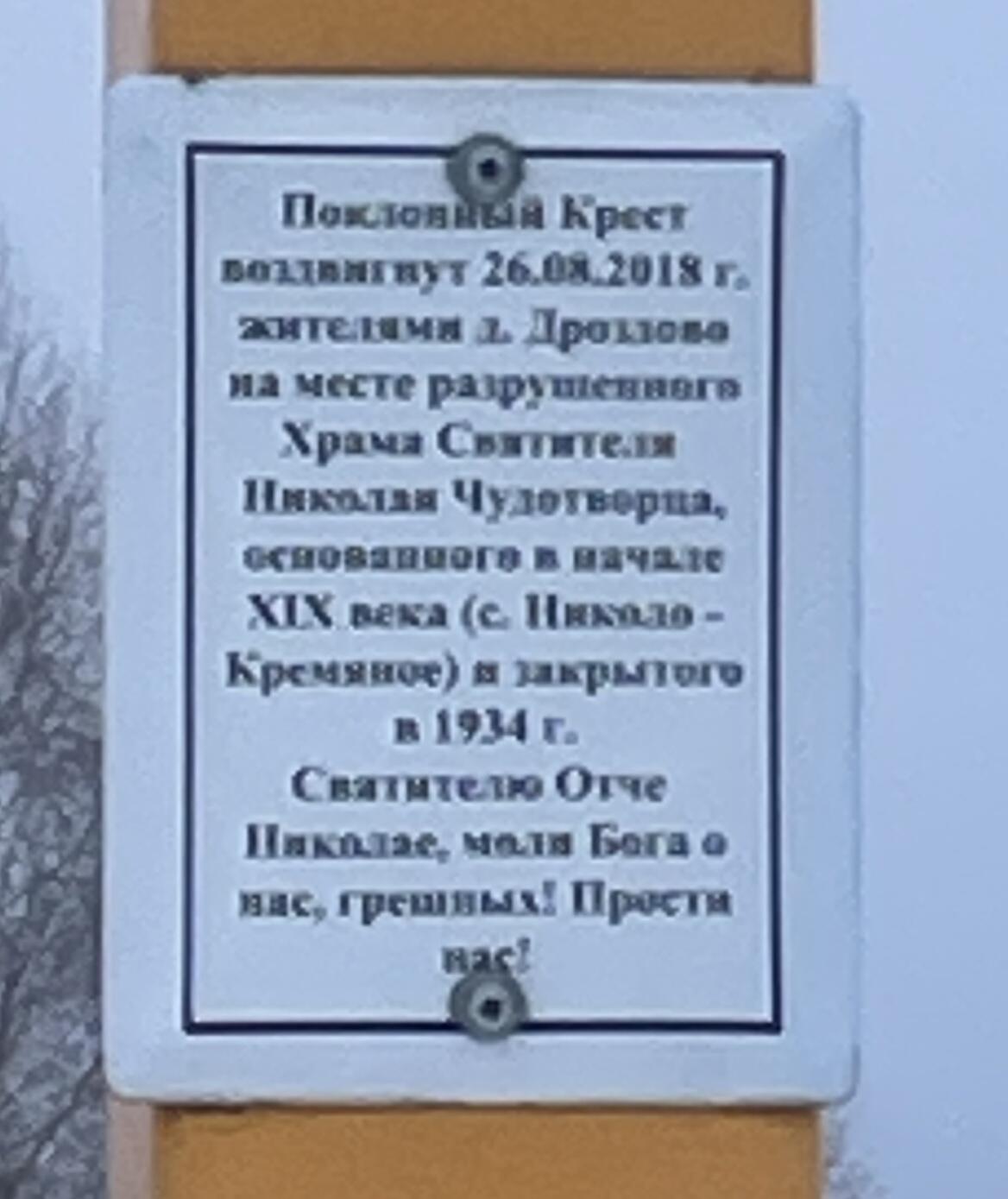 В селе Николо-Кремяном/Кременном (сейчас это Дроздово) находилась церковь Николы Чудотворца, ставшая в 18 веке не только религиозным центром, но и просветительским, поскольку при ней работала церковно-приходская школа. Жители Дроздова без труда покажут место, где находился храм, — в годы советской власти там выстроили совхозную столовую.