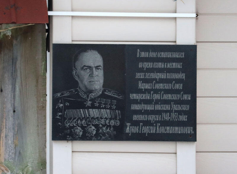 Готовясь к 120-летнему юбилею Маршала Советского Союза Георгия Константиновича Жукова, члены правления регионального Фонда Г.К. Жукова обратили внимание на то, что на Среднем Урале нет ни одной мемориальной доски, посвящённой увековечению памяти Маршала Победы как страстного охотника и рыболова. Жуков не скрывал своего хобби, а местность в среднем течении реки Боёвка лесистая и богата дичью. Здесь находилось военно-охотничьи угодья Уральского военного округа.