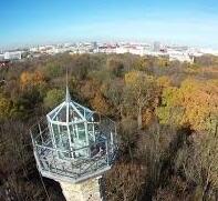 Для того чтобы полюбоваться Гомелем с высоты птичьего полета, вам для начала предстоит преодолеть около 200 ступенек обзорной башни, которая находится в южной части паркового ансамбля, недалеко от Зимнего сада.