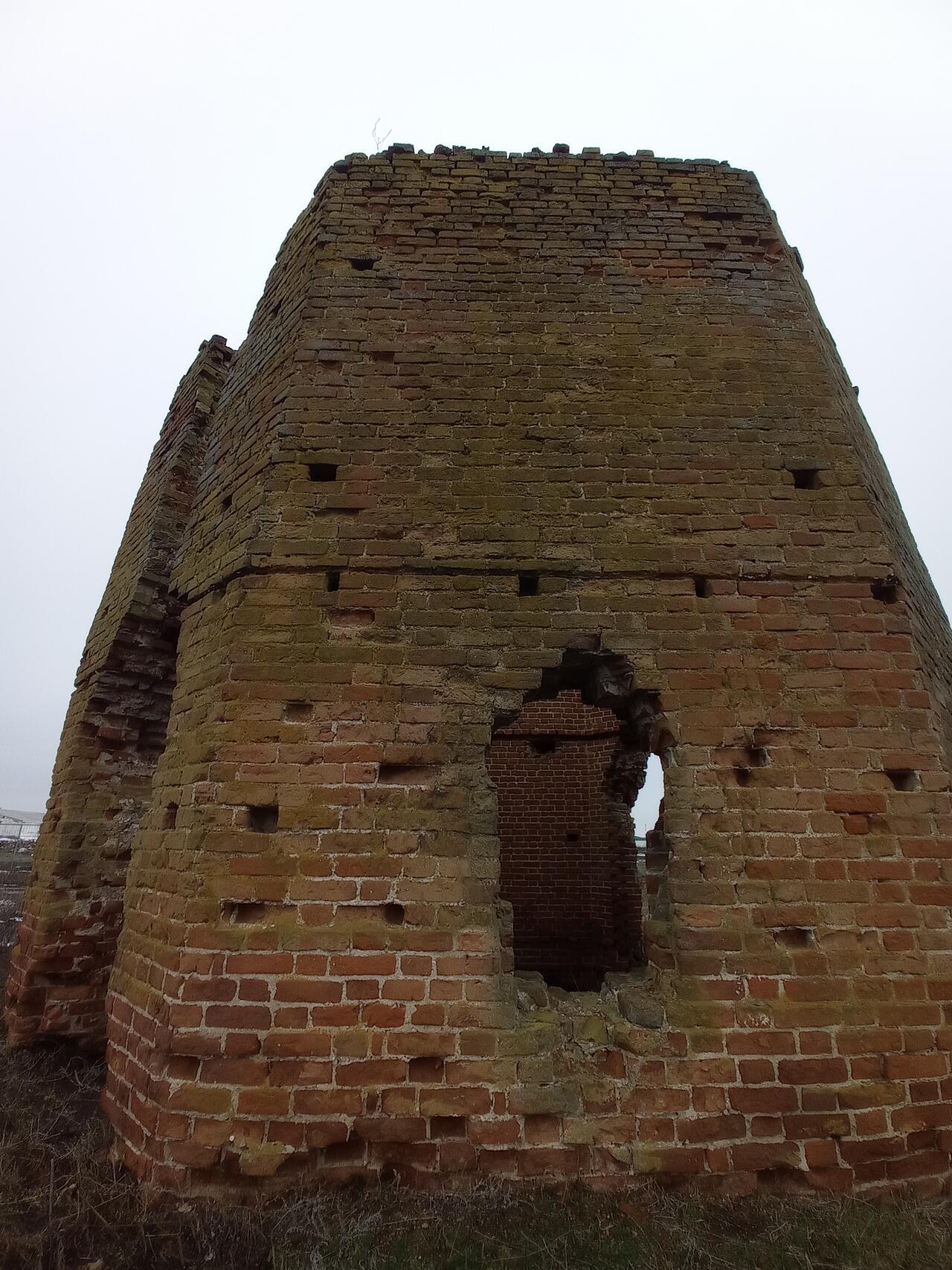 До самой мельницы прошлись пешком по размокшему чернозёму. Так неожиданно перед нами открылся исторический объект - голландская мельница, похожая на крепостную башню.