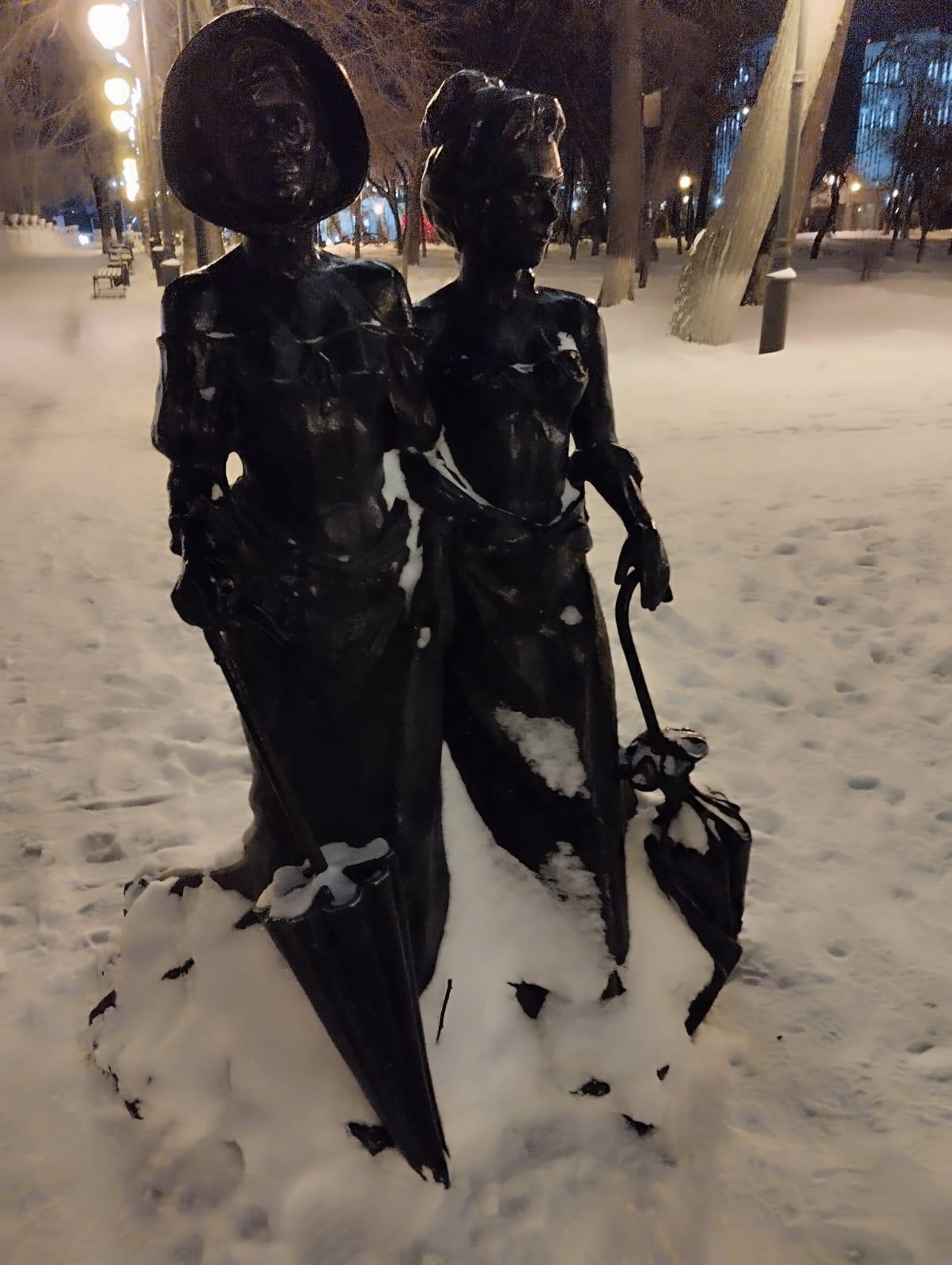 Главную аллею сада украшает скульптурная композиция: 2 дамы в нарядах XIX века с зонтиками прогуливаются по аллее. Другая известная скульптура изображает офицера, который мечтательно смотрит вдаль. Жители Тюмени называют офицера Александром, но официальное название скульптуры — «Гусар». Рядом с ним установлена скульптура мальчика, также мечтательно размышляющего о чем-то.
