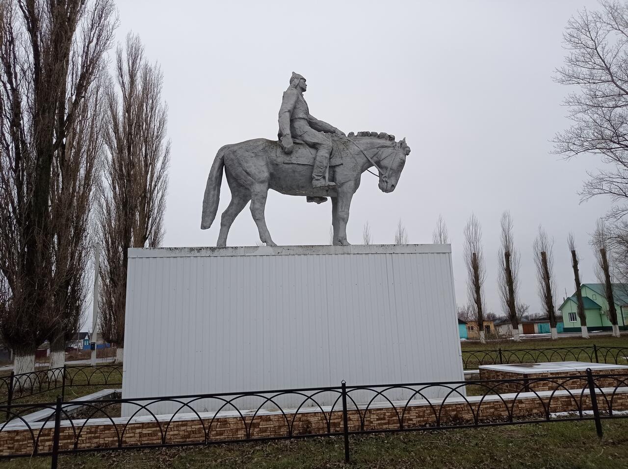 Стоит в селе Нащёкино памятник - Будёновец на коне. Не много таких памятников есть. Мы не могли проехать мимо. Подошли почтить память погибшим героям Гражданской войны. На памятнике табличка: Воинам-красноармейцам 40-й Богучарской дивизии, погибшим в гражданской войне