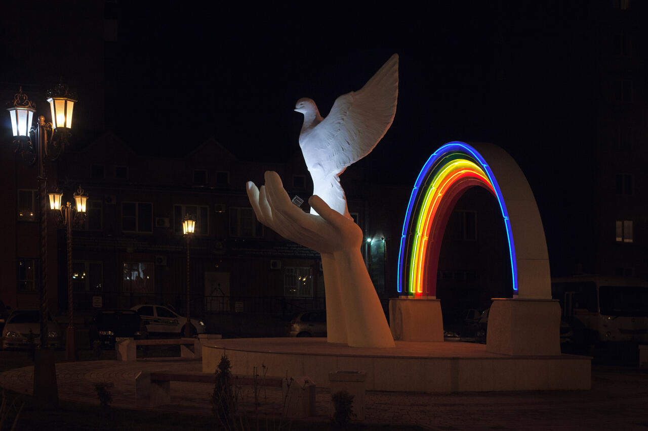 Композиция во всей своей красе открывается взору въезжающих в город Армавир со стороны города Новокубанска. Выполненная с высоким творческим подходом, она не только несет идею мира, но и очень украшает город.