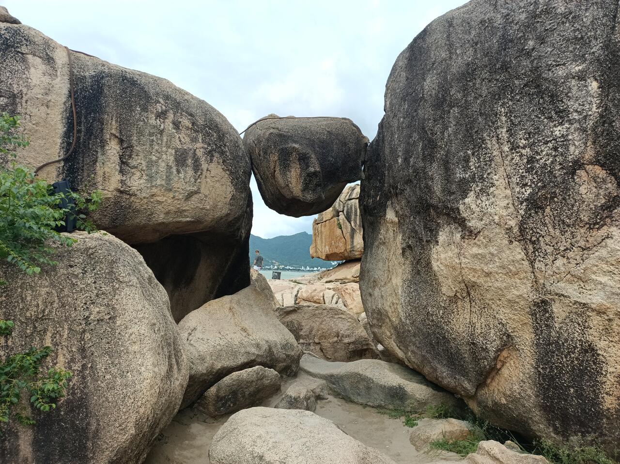 Спустившись по ступеням вниз, вы окажетесь в самом Саду камней. Здесь валуны разных форм и размеров хаотично лежат по всему берегу. Туристы забираются на них, прыгают с камня на камень, фотографируются в забавных позах. Самый крупный массив находится чуть дальше в сторону моря. К нему нужно пробираться по узкой насыпи. Зато с него открываются лучшие виды. Здесь же моно увидеть «висячий камень», застрявший между двух обломков скал, и образовавший своеобразные ворота, через которые ведет тропа. Он мне напомнил известный норвежский камень Кьерагболтен.