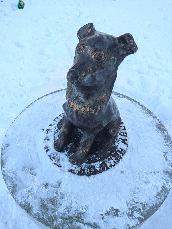 Речь идет о стальном псе, автором которого является архитектор Ральф Орлов, сделавший очередной подарок городу. Жителям новичок понравился. Появилась и новая традиция - на счастье потереть псу нос.