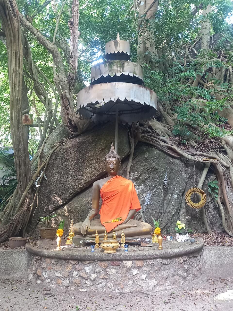 Правильно называть храмовый комплекс — международный медитационный центр «Горная пещера» Khao Tham — Mountain Cave. Основан храм более 50 лет назад. Основала храм тайская женщина Mae Chee Ahmon (судя по фотографии и видео, женщине уже очень много лет). Ретриты в храме проводятся с 1988 года!