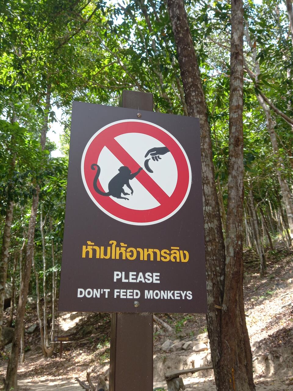 По дороге можно увидеть обезьян. Но плакат, что будет по пути, гласит : обезьян не кормить!