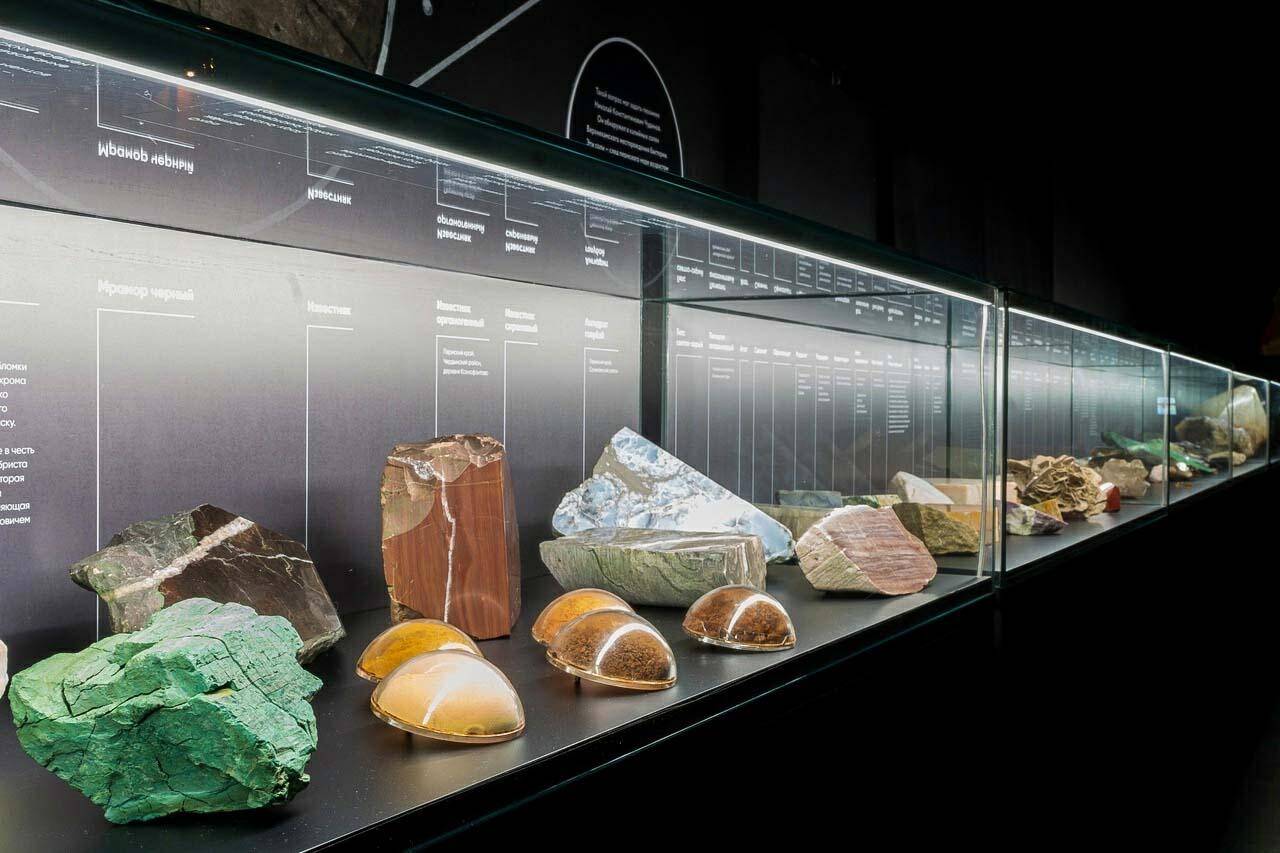 В коллекции уральских минералов и камней есть изумрудно-зеленый уваровит, горный хрусталь, малахит и другие экспонаты. Здесь же можно увидеть редкий волконскоит, из него производят зеленую краску, которую особенно любил Пабло Пикассо.