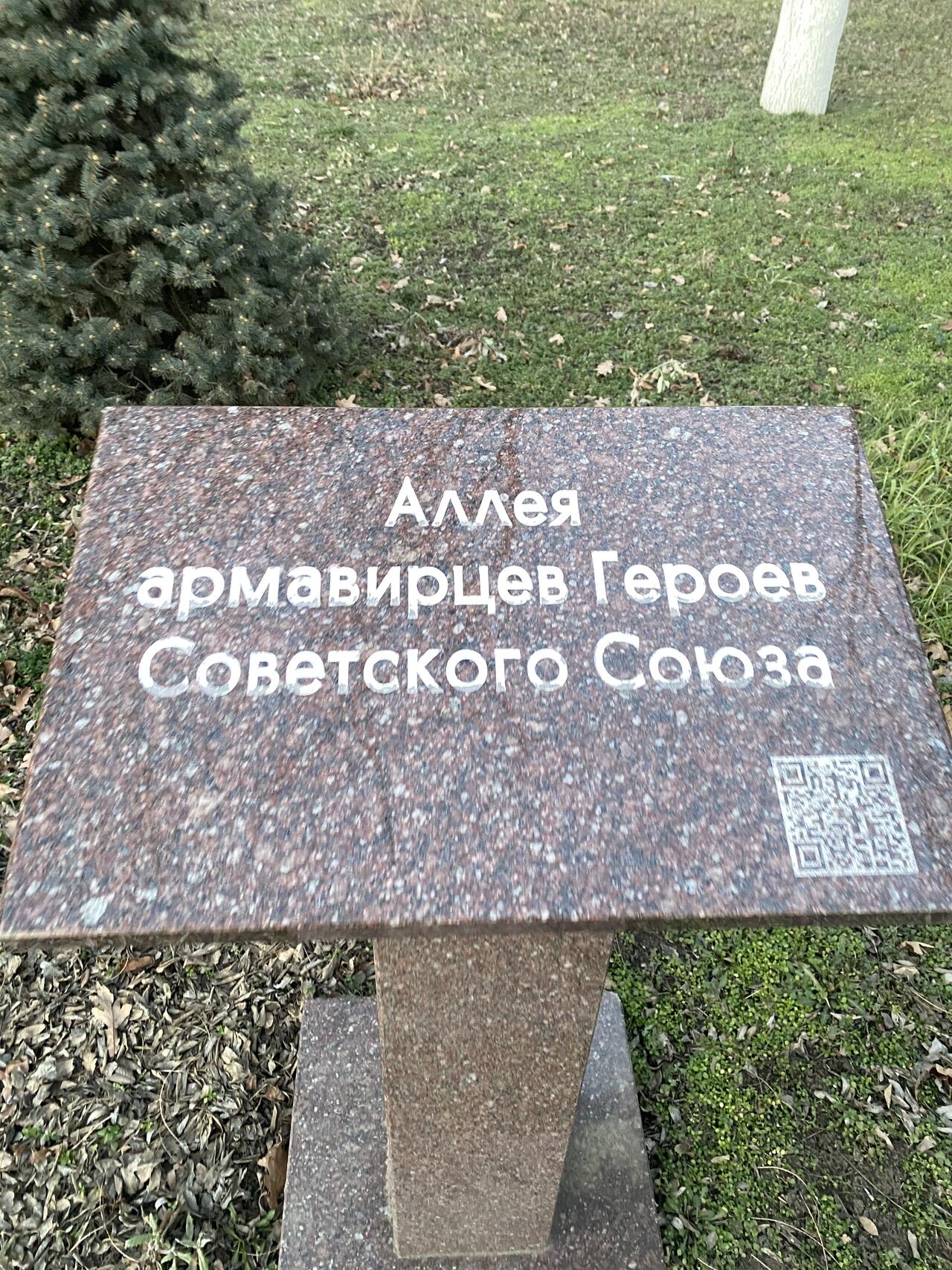Бюсты героев отлиты из бронзы, постаменты сделаны из цельного мрамора. Аллея сохранится на долгие годы. А чтобы все желающие смогли узнать подробную информацию о подвигах, на входе установлен стенд с QR-кодом. С его помощью владелец смартфона сможет перейти на портал и прочитать много интересного об армавирцах-героях.