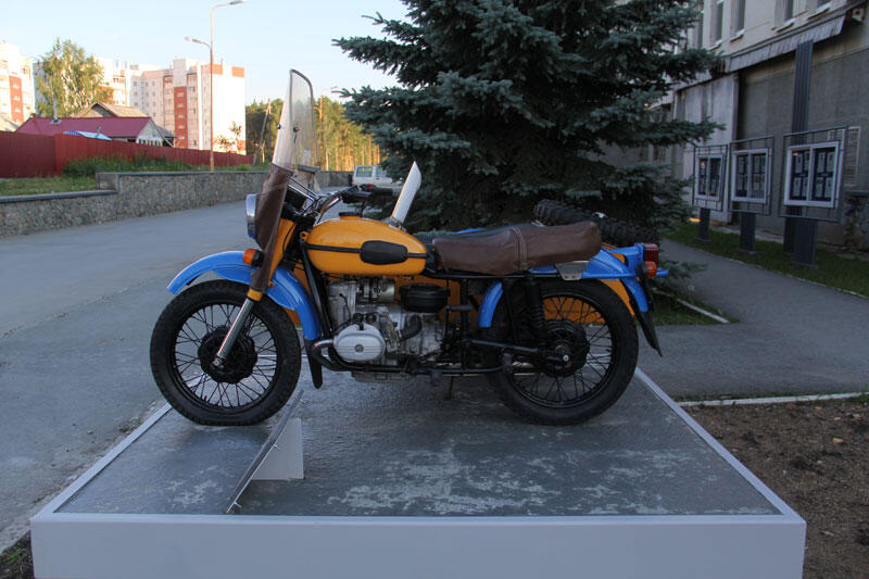 При реконструкции данного мотоцикла особое значение было уделено цвету, цвет соответствует эпохе прошлых лет: желтый с синими полосками, на коляске - надпись «ГАИ».