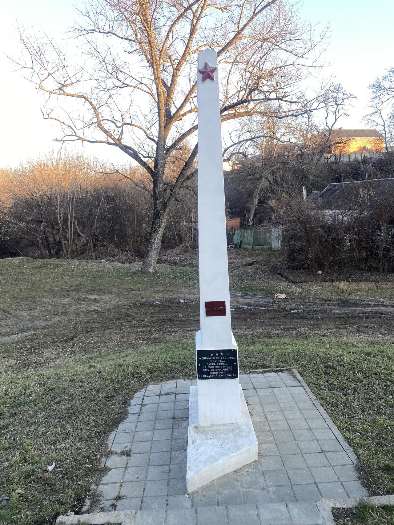 У самой трассы, напротив (через реку) популярного сквера «Аллея влюбленных», расположен скромный обелиск с надписью «С 29 июля по 7 августа 1942 года здесь стояла на обороне города рота автоматчиков зенитного артиллерийского полка».