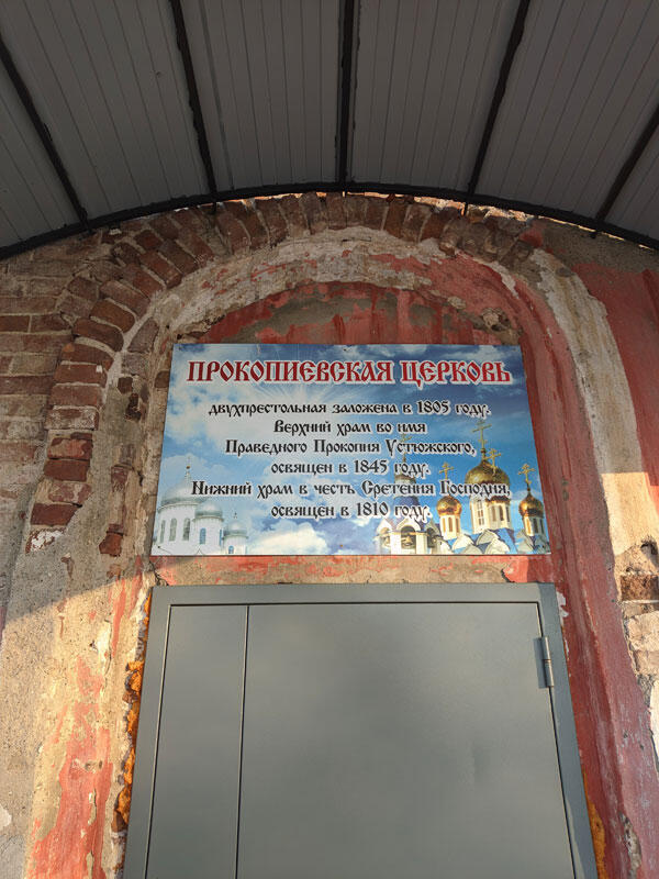 Современный вид Свято-Прокопиевского храма с двумя приделами в честь Сретения Господня и во имя Праведного Прокопия Устюжского далек от канонического. Теперь это двухэтажное здание с розовым фасадом. Внутри открывается еще более печальная картина: добротные своды, построенные на века, осквернены непристойными надписями и рисунками. Под ногами битый кирпич, осколки стекла…