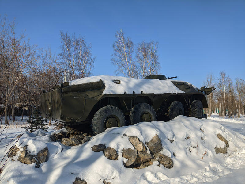 На площади установлены советский многоцелевой вертолёт Ми-8МТ, самоходная гаубица «Акация», макет подводной лодки с настоящей рубкой и артиллерийскими установками. Технику приводят в порядок представители общественных организаций и кадеты из Первого Уральского казачьего кадетского корпуса.