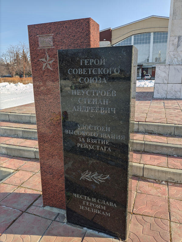 А знаете ли вы, площадь Героев в Сухом Логу первоначально называлась Комсомольской? На стеле был изображен комсомольский значок. Сейчас на его месте орден Победы, а вот надпись «Слава тебе, комсомол!» осталась. Наши Герои Советского Союза, которым посвящены мраморные плиты возле стелы, были комсомольцами. Поэтому противоречия в названиях – Площадь Героев и Комсомольская площадь – нет.