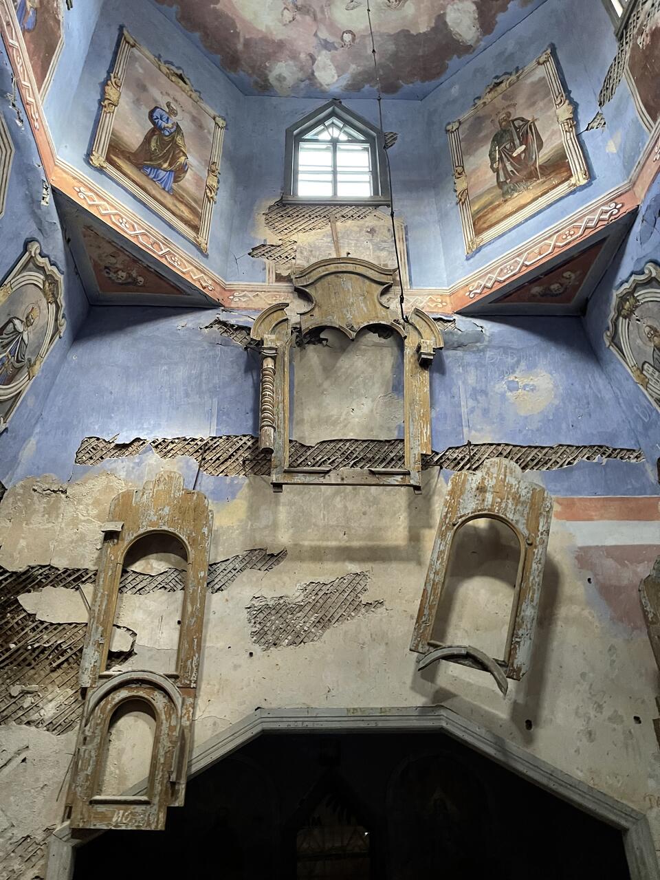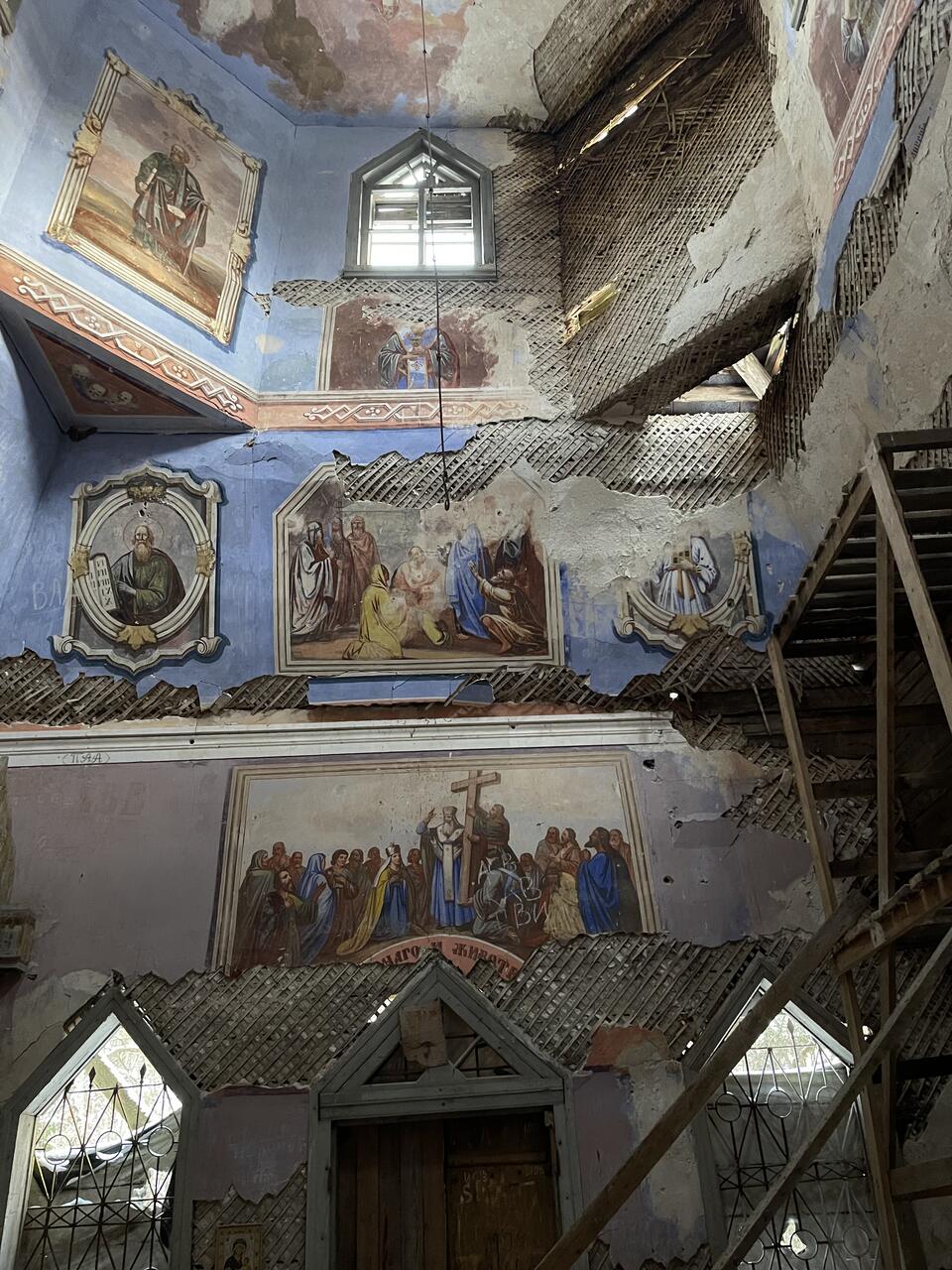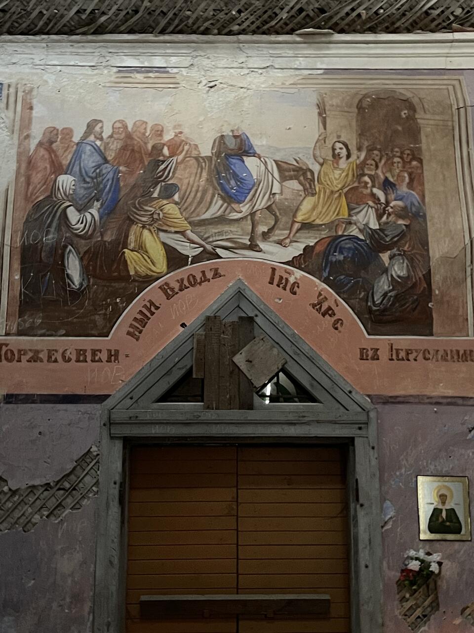 В интерьере храма сохранилась живопись на штукатурке по дранке. Она выполнена в самом конце XIX - первой трети XX вв. какой-то крестьянской мастерской в традициях народного искусства, далекого от академических канонов. Тем не менее, эта живопись придает интерьеру праздничный и радостный вид.