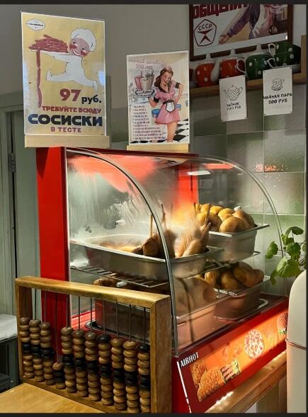 Рекомендуем вам посетить ретро-кафе, которое выполнено в советском стиле. Заведение разместилось на первом этаже жилого дома в Городке Чекистов. Кафетерий как будто бы переносит гостей в советскую эпоху, в этом помогают элементы интерьера: виниловые проигрыватели, радио-приемники, ламповый телевизор, пластинки, посуда, холодильник «ЗиЛ», плакаты и плитка на стенах, афиши фильмов, пузатые чайники в горох как из бабушкиного сервиза, светильники в торшерах с бахромой. В меню, можно найти «те самые пончики» с сахарной пудрой и воздушной структурой, а также вкусные сосиски на палочке! А также жвачки с вкладышами начала 90х! Turbo и Donald Duck!