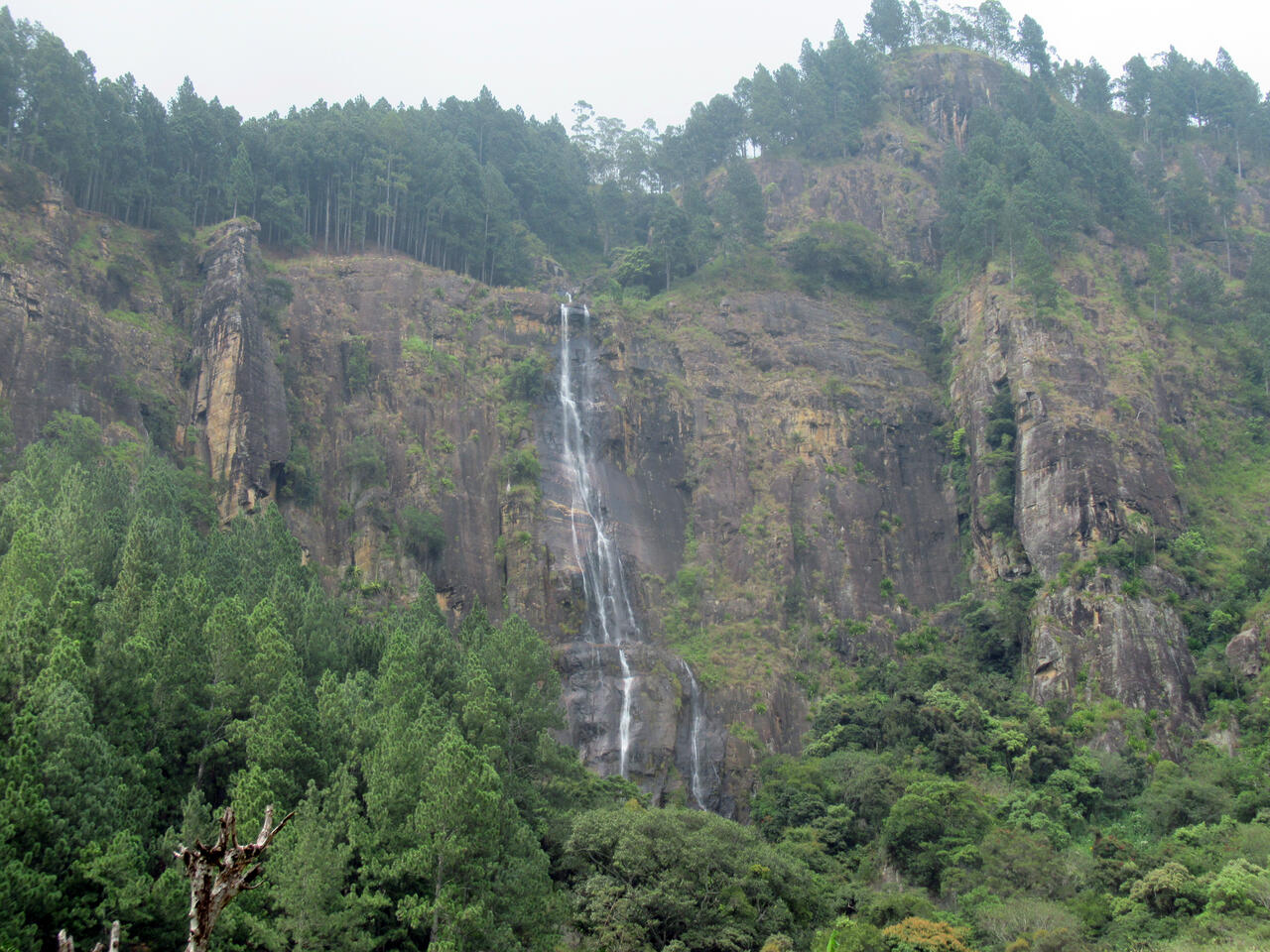 Но тропа ведёт дальше через сосновый лес. Воздух здесь отличается чистотой и целительной силой. Вскоре лес сменяется травянистыми склонами холмов, и мы увидим развилку. Нижняя тропа ведёт к водопаду Ланка, а верхняя – к водопаду Ялатенна, источник которого берёт начало в Хортон-Плейнс. Поскольку это место окружено лесами, вода в этом ручье очень чистая и кристально-прозрачная. Перед обоими водопадами есть бассейны для купания, но вода здесь холодная.