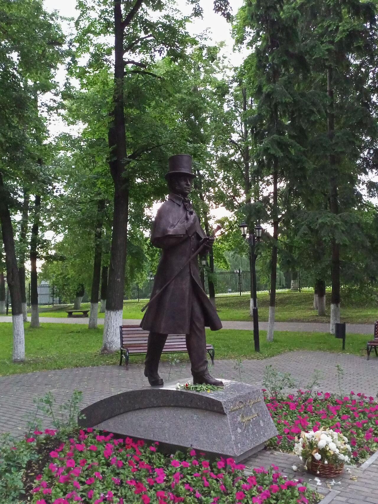 «Памятник поэту установлен на постамент в виде мостика, за счет этого визуально кажется, что он шагает. Так мы представили дорогу, которая связывала Северную столицу с его родовым имением. Даже камень специально заказали в Санкт-Петербурге. При этом никаких резких движений Пушкин не совершает, лишь размеренно идет. Такая композиция хорошо смотрится на фоне сквера, где много деревьев», — говорит скульптор Игорь Черноглазов.
